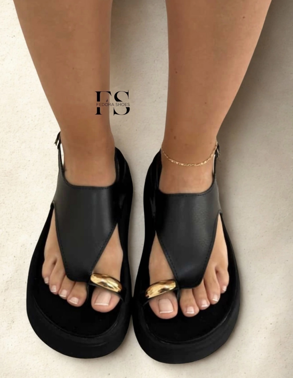 Su innovador agarre que cubre todo el empeine, junto con un detalle en el dedo gordo adornado con un aplique dorado, aporta un toque de sofisticación minimalista que eleva cualquier look, desde casual hasta formal.