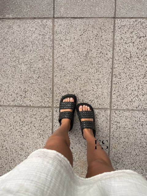 Detalles que enamoran: - Dos tiras de yute negro con delicado brillo - Base cómoda de 2 cm - Materiales cruelty free para un estilo consciente